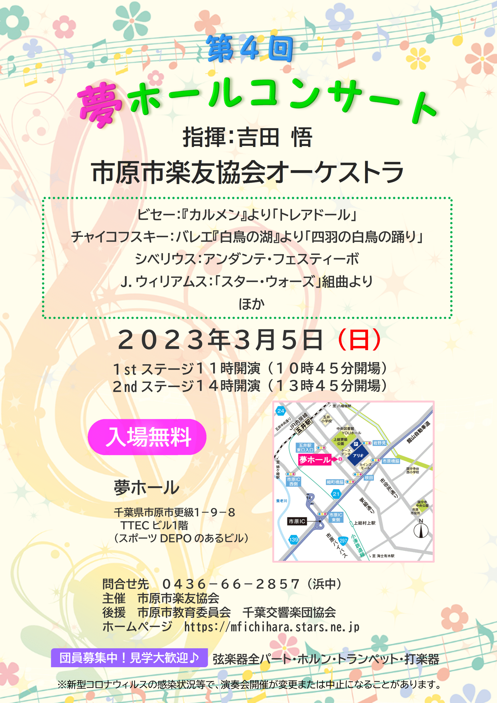 ※10月15日の練習会場が、「五井公民館視聴覚室」に変更です!